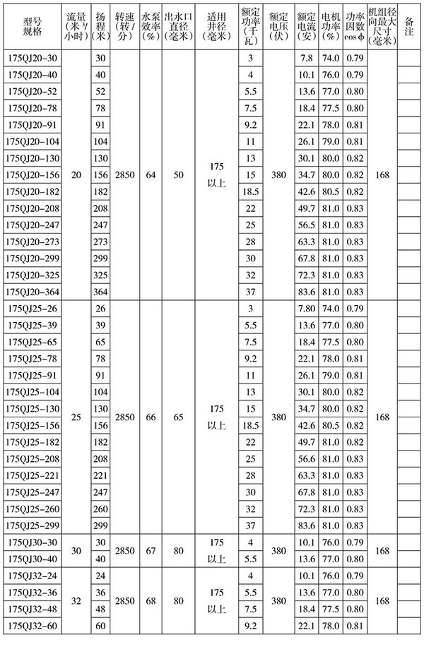 ( 1 ) 水溫 a:QJ 型 ≤20℃ b: QJ 型 ≤20℃